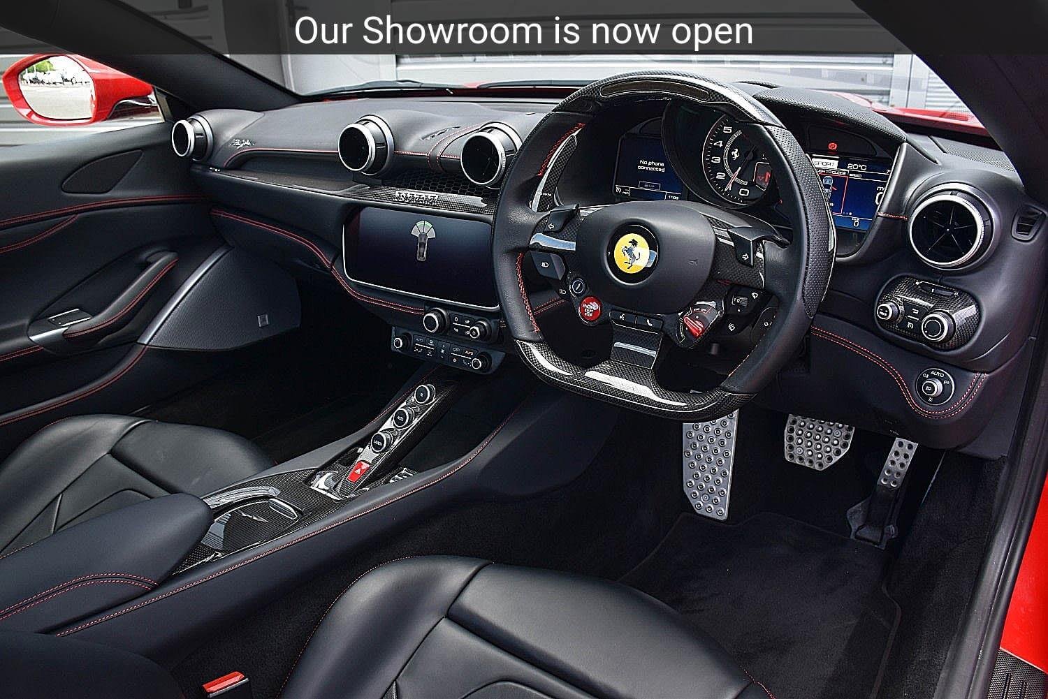 Carbon Fibre Driver Zone and LEDs,Carbon Fibre Rear Air Ducts,20″ Forged Diamond Alloy Wheels,Yellow Brake Calipers,Scuderia Ferrari Shields,Front Grille with Chrome Edges,Black Ceramic Exhaust Pipes,Parking Camera,Adaptive Front Lights,Auto Dimming Rear View Mirror,Magneride Dual Mode Suspension,Heat Insulating Windscreen,High Emotion Low Emission,Rosso Stitching,Daytona Style Seats,Ventilated Front Seats,Cavallinos Stitched on Headrests in Rosso,Aluminium Driver and Passenger Footrests,Foldable Rear Seats Backrest,Yellow Rev Counter,Balance of Service Plan Until November 2026